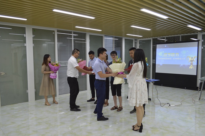 罗大陆同学自2015年入职以来,对销售一直有一颗热烈的心,用自身的热情去感动客户,为公司的发展壮大做出巨大贡献。晋升主管2个月以来,努力完成自身业绩,并用心教导下属成员,认真落实岗位职责。大会上罗大陆同学对下属同事进行鼓励,对公司领导多年的悉心教导表示由衷感谢。
